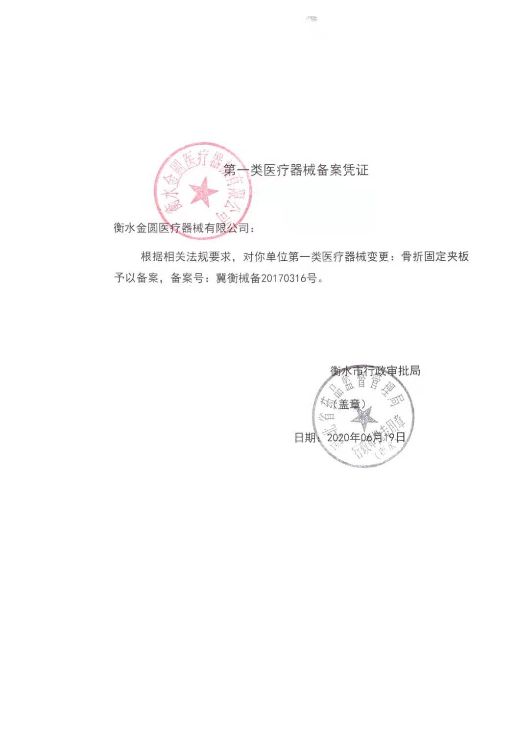 骨折固定夾板**類(lèi)醫(yī)院器械備案憑證